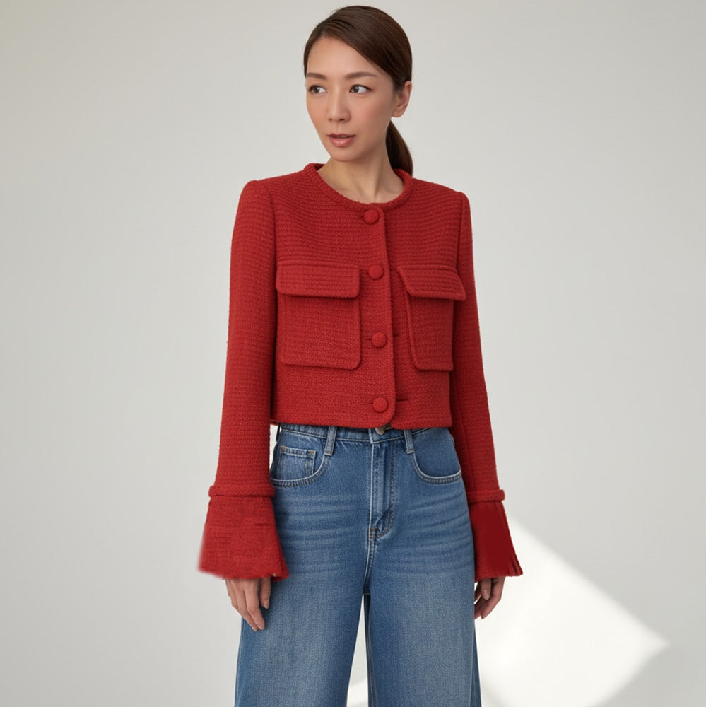 red tweed flare cuffs jacket *pre-order*