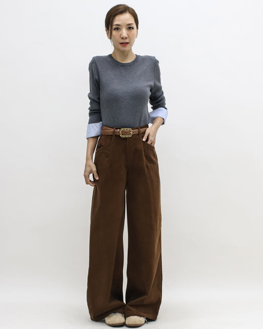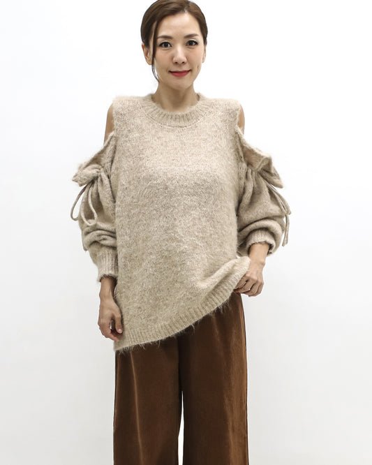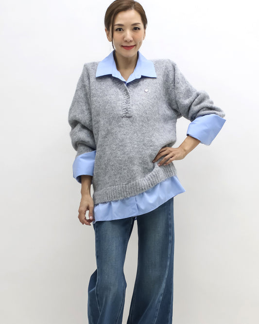 ivory w/ black knitted vest ruched sleeve shirt *pre-order*