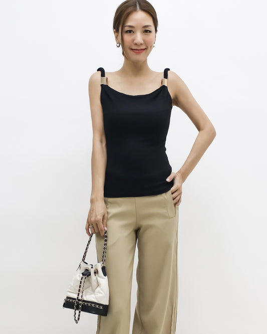 ivory & black beige stripes w/ gold chain knitted top *pre-order*