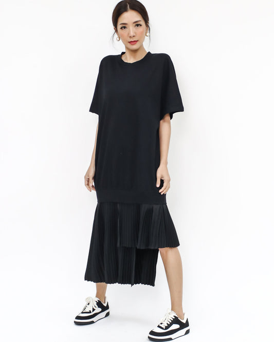 black tee w/ asymmetric pleats hem dress *pre-order*