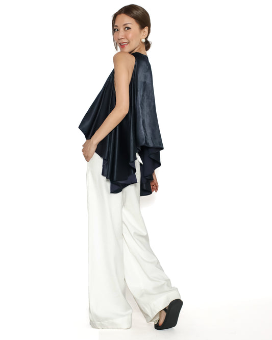 Sold outnavy satin asymmetric hem vest