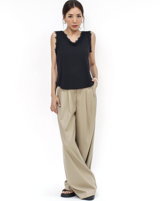 black ottoman lace trim vest *pre-order*