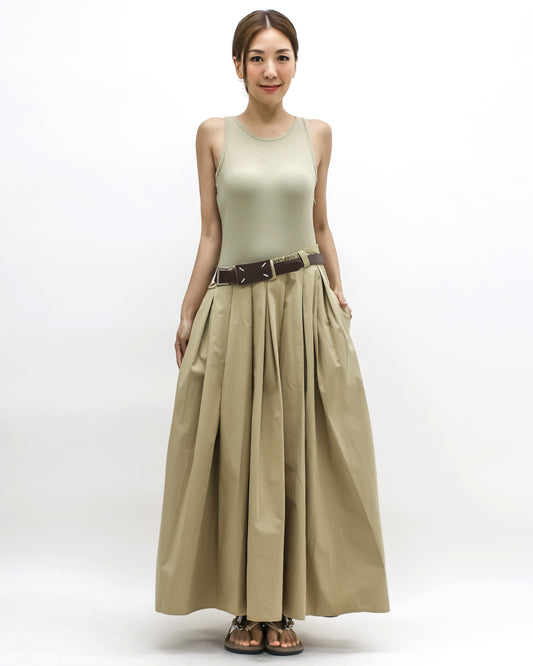 beige jersey vest & flare longline dress w/ belt *pre-order*