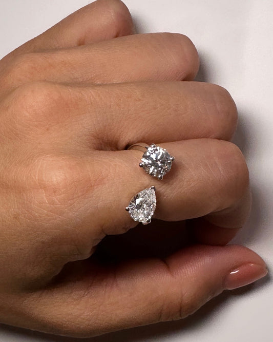 GAL round & pear 18K lab-grown diamond open ring *pre-order*