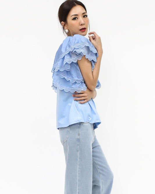 beige ruffles hem w/ embroidered front knitted cardigan *pre-order*