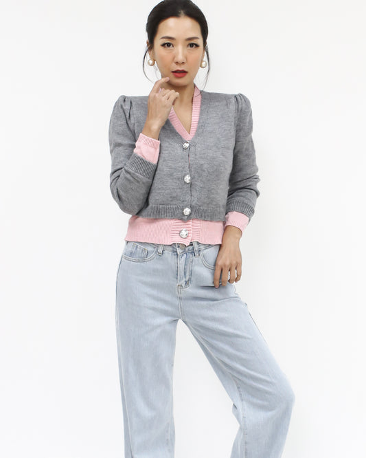 grey & pink layer knitted cardigan *pre-order*