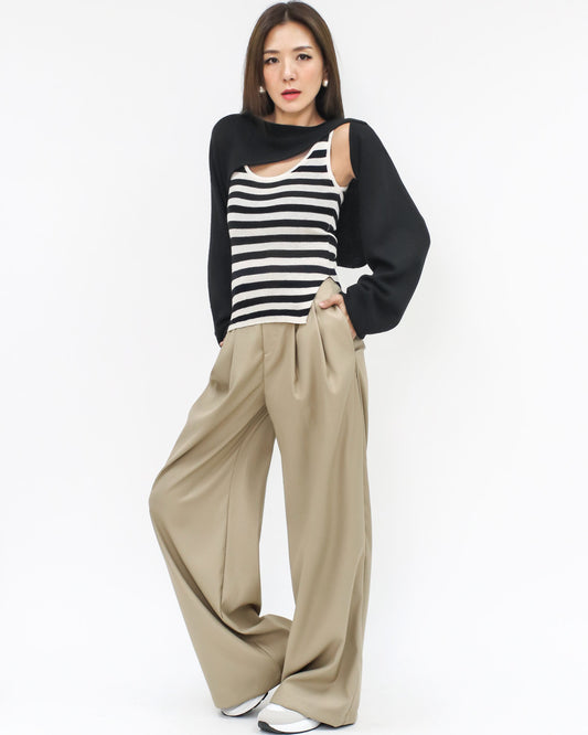 ivory & black stripes fine knitted vest & arm warmer set *pre-order*