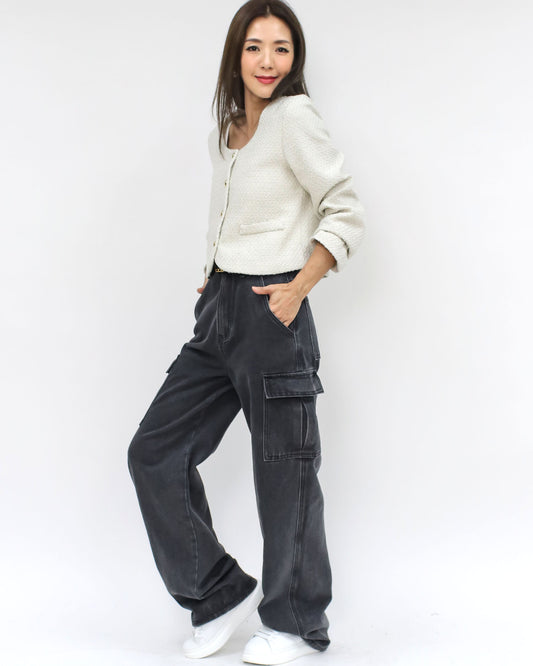 grey one shoulder knitted vest w/ cardigan set *pre-order*