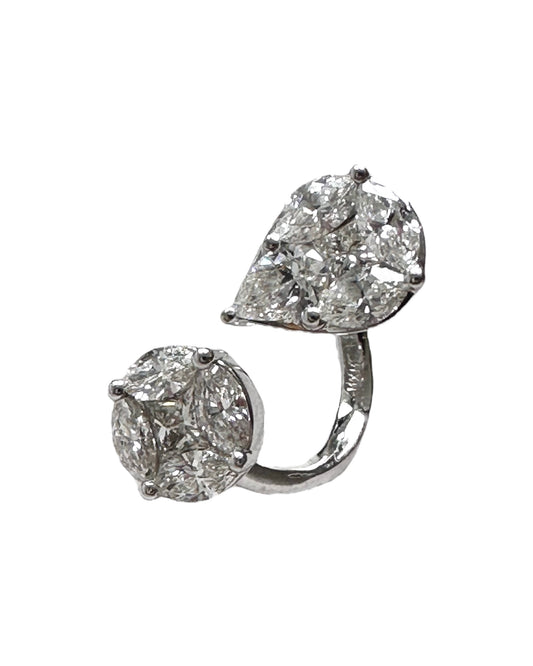 GAL round & pear double illusion lab-grown diamonds 18K white gold ring *pre-order*