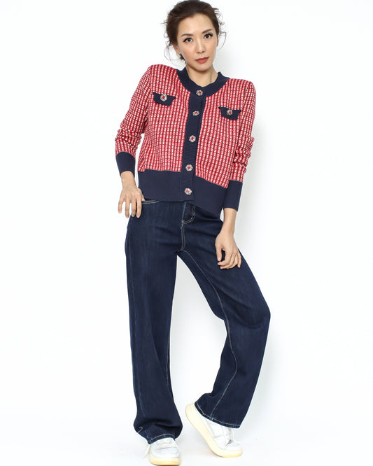navy w/ blue stripes collar contrast vest jacket & skirt set *pre-order*