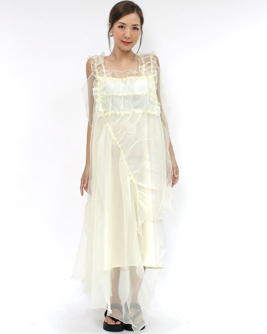 ivory mesh layers ruffles dress