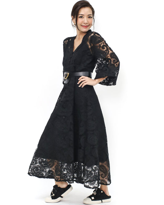 black crochet lace longline dress with rope belt *pre-order*