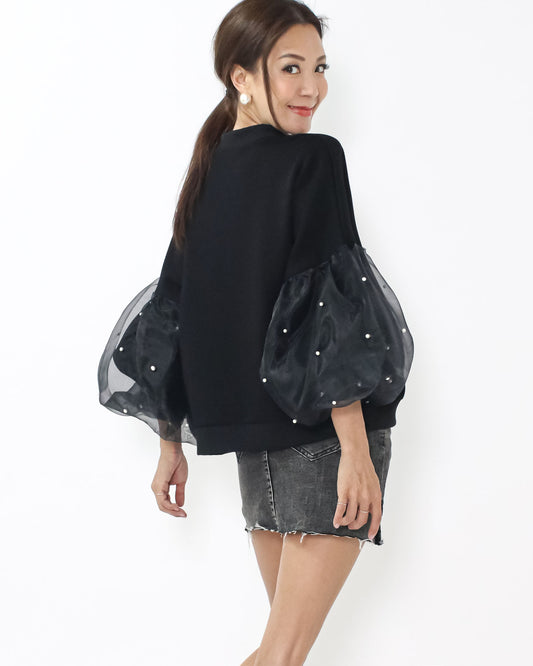 black w/ mesh pearls balloon sleeves neoprene jacket *pre-order*