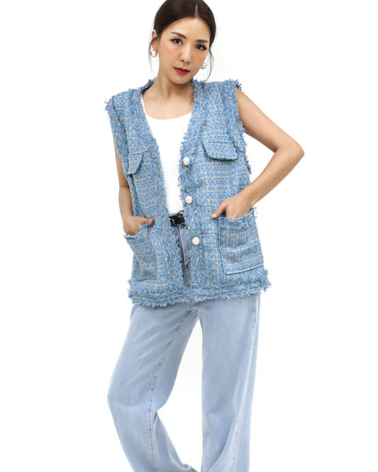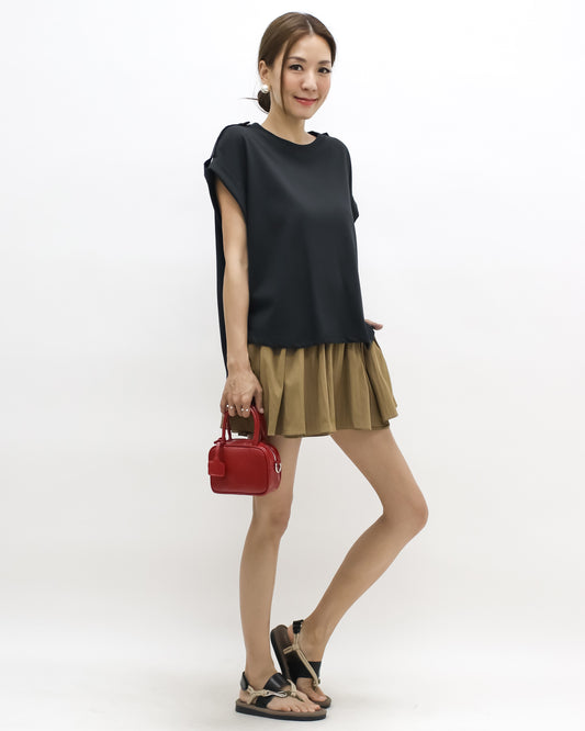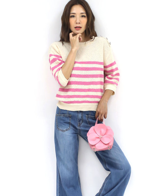 beige & ivory mesh layer neckline knitted top *pre-order*