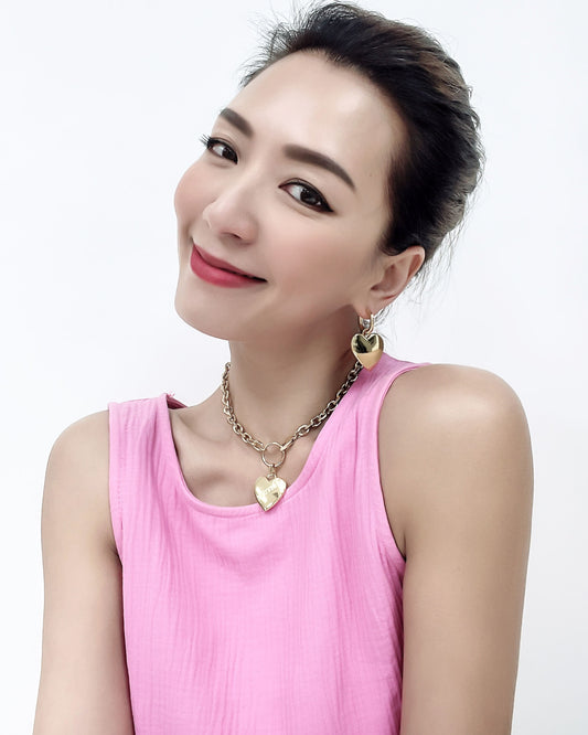 gold heart necklace & earrings set