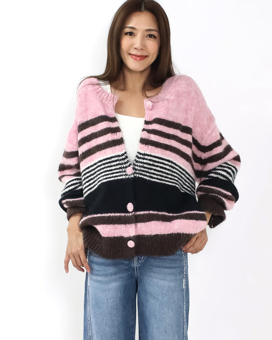 pink brown ivory and grey stripe knitted cardigan *pre-order*