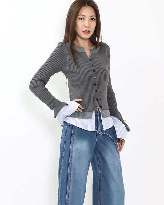 grey w/ blue stripes shirt layer knitted top *pre-order*