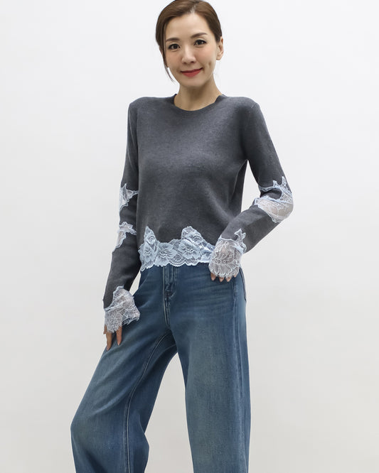 grey w/ blue lace knitted top