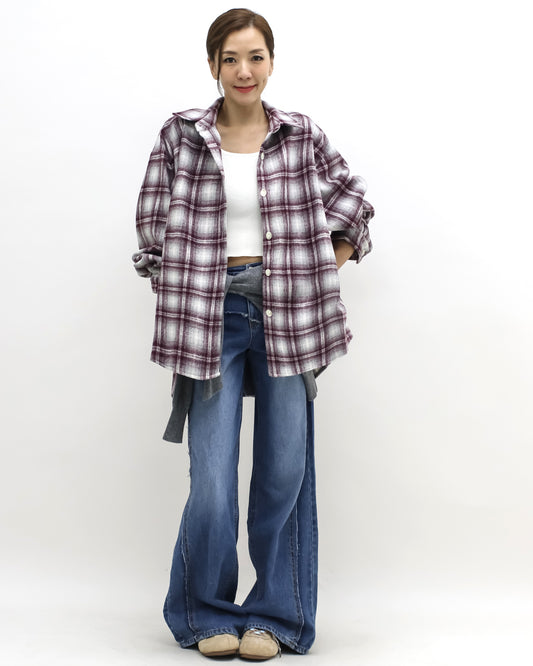 burgundy & ivory checker wool shirt