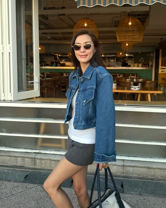 blue denim shoulder pads cropped jacket