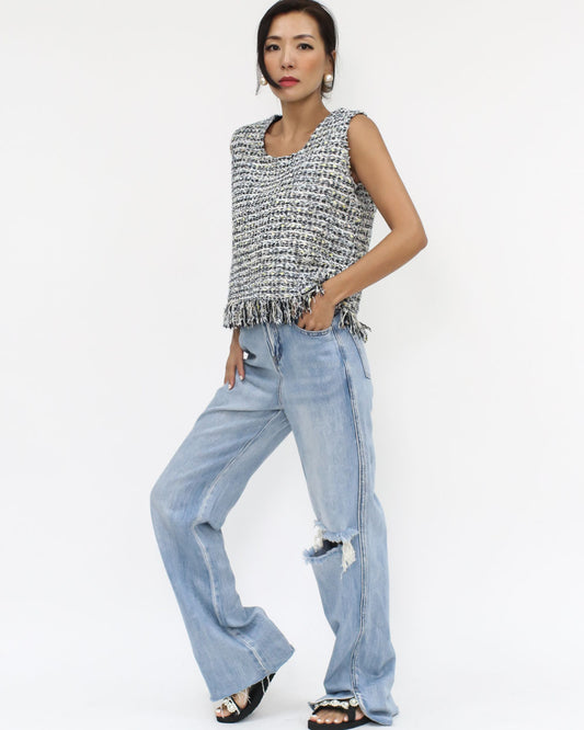 black & ivory tweed luxe tassels vest *pre-order*