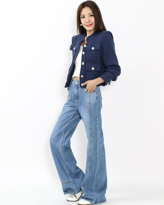 navy tweed pockets front jacket *pre-order*