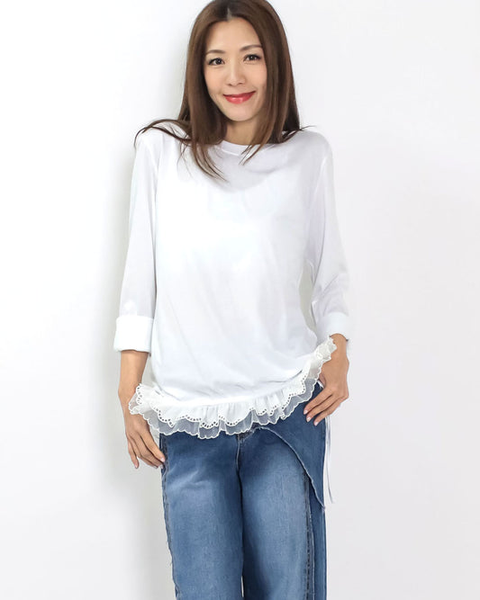 ivory w/ mesh crochet ruffles frill tee