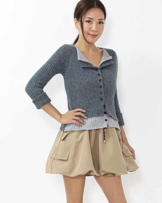 black w/ beige tech ruched sleeves sweatshirt *pre-order*