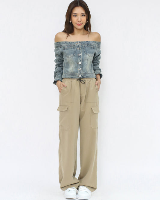 beige PU leather w/ ivory canvas handle bag *pre-order*