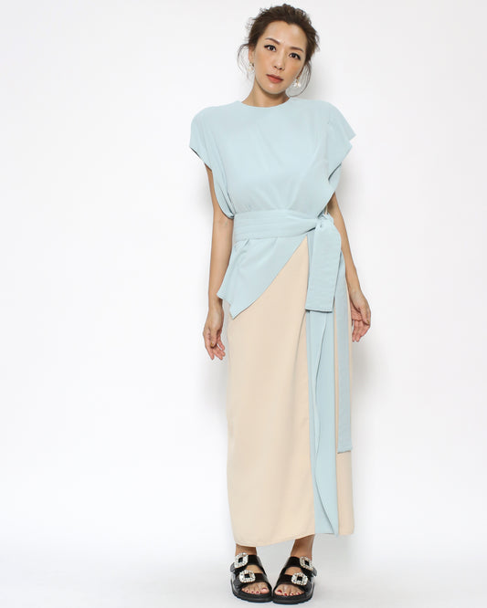 black linen & mesh ruched asymmetric hem dress *pre-order*