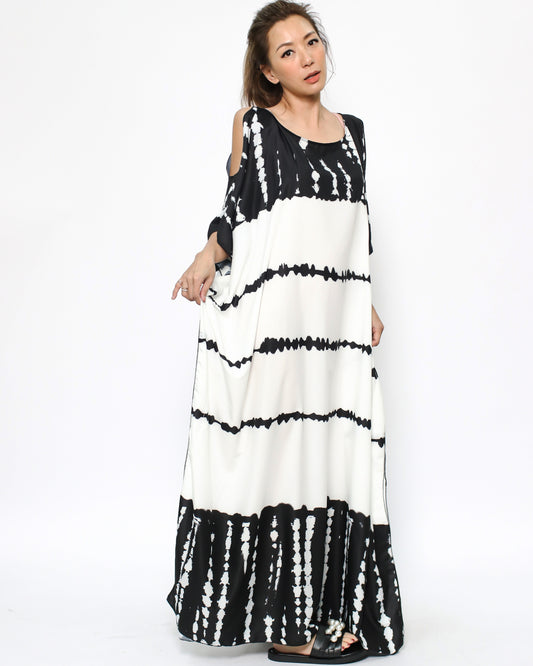 black & ivory tie-dye cutout shoulders cover up dress *pre-order*