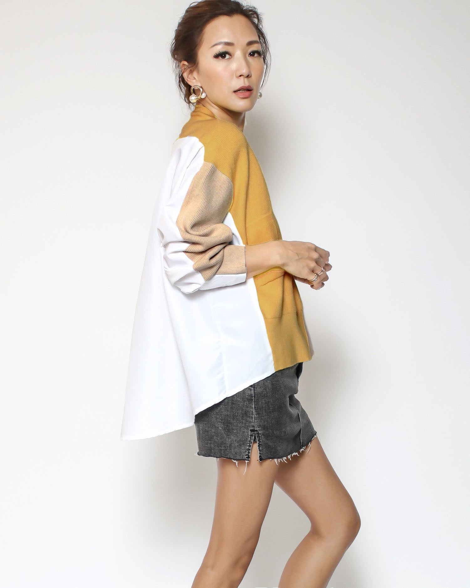 beige & mustard knitted with white shirt back contrast top *pre-order*