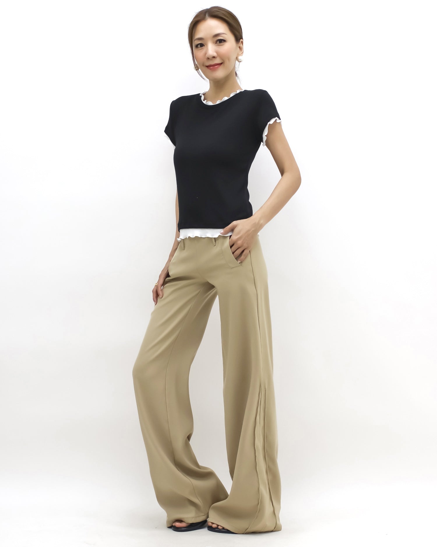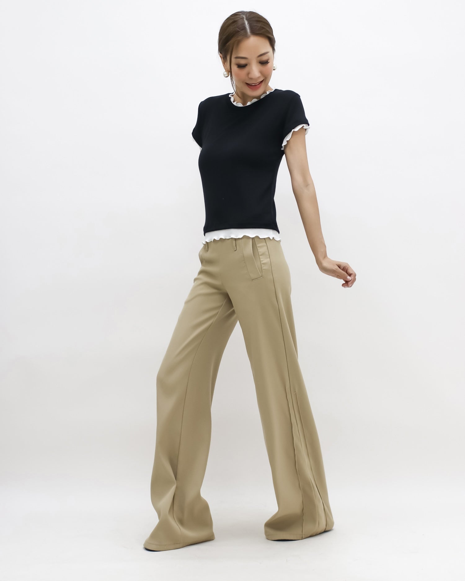 black w/ ivory ruffles hem tee