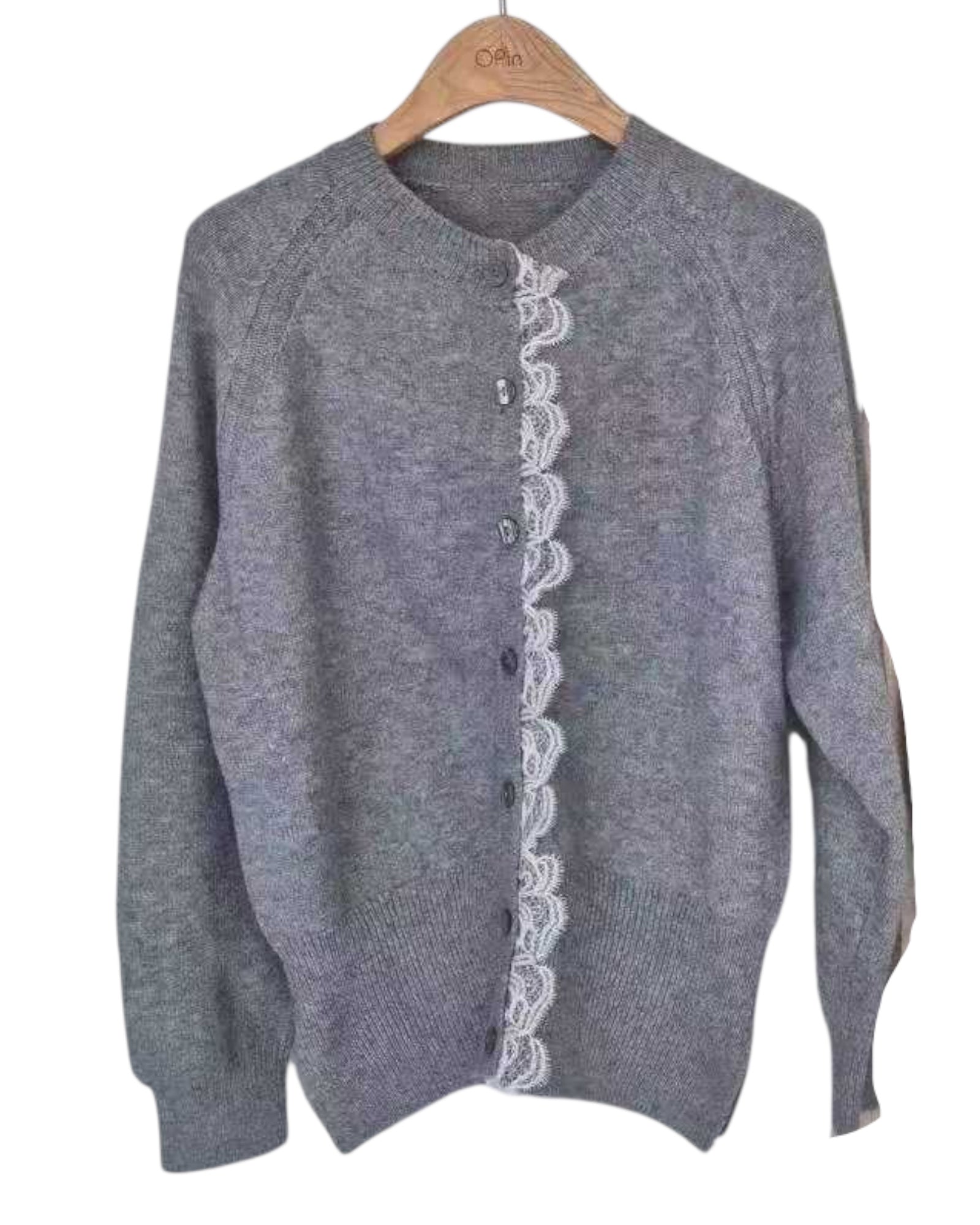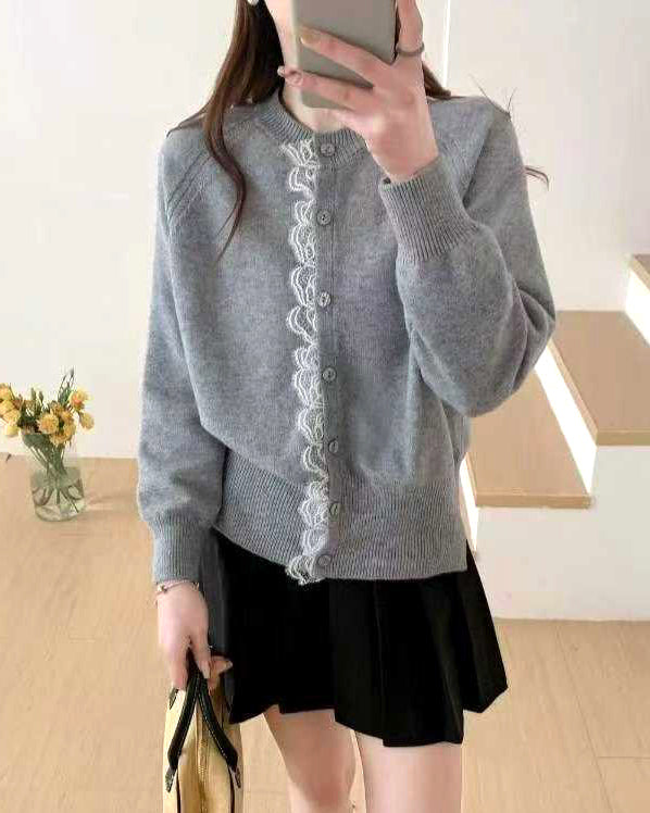 grey lace hem knitted cardigan *pre-order*