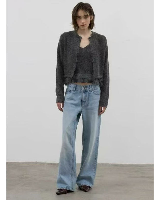 grey mohair ruffles hem slip w/ cardigan set *pre-order*